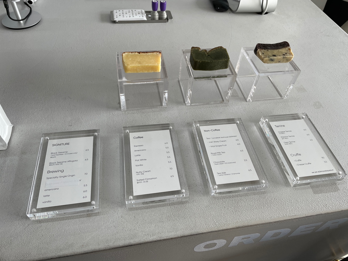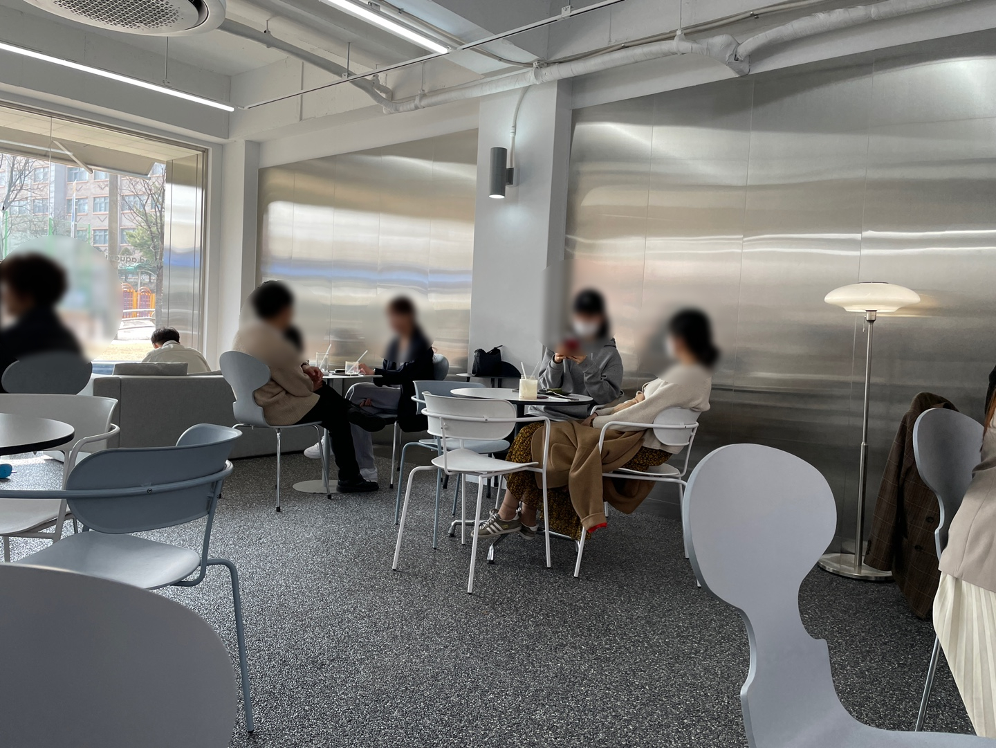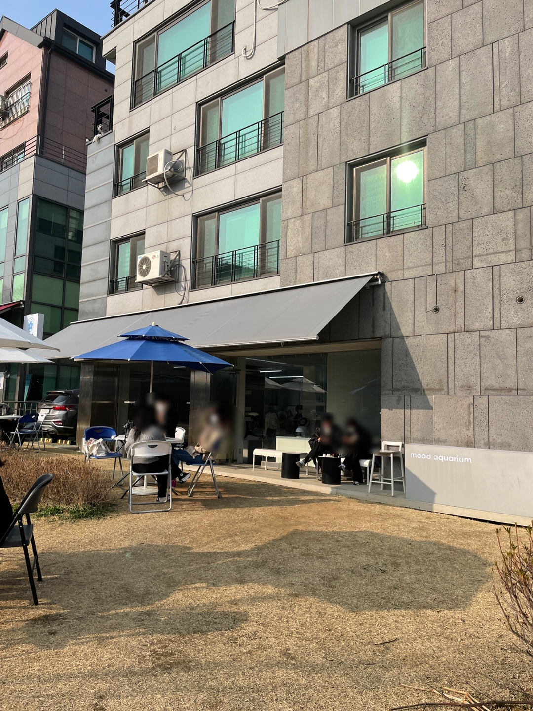 이름에서 풍겨오듯 아쿠아리움의 바이브가 풍겨오는 깔끔하고 후레쉬한 분위기를 자랑한다. 시그니처 컬러는 블루, 실버, 그레이다. 일대 타 카페와 비교했을 때 가장 도시적인 분위기를 풍기는 곳이다. 내부/외부 테이블이 마련되어 있고, 일부 내부 좌석은 투명 가림막이 설치되어 있어서 위생관리에도 철저한 모습이었다.