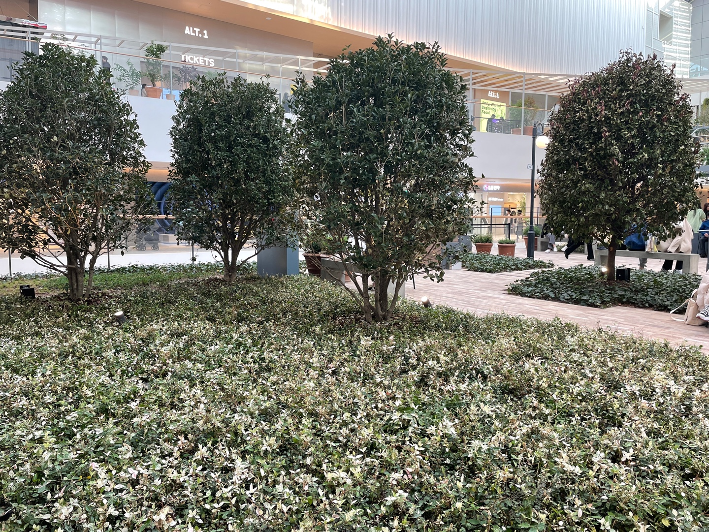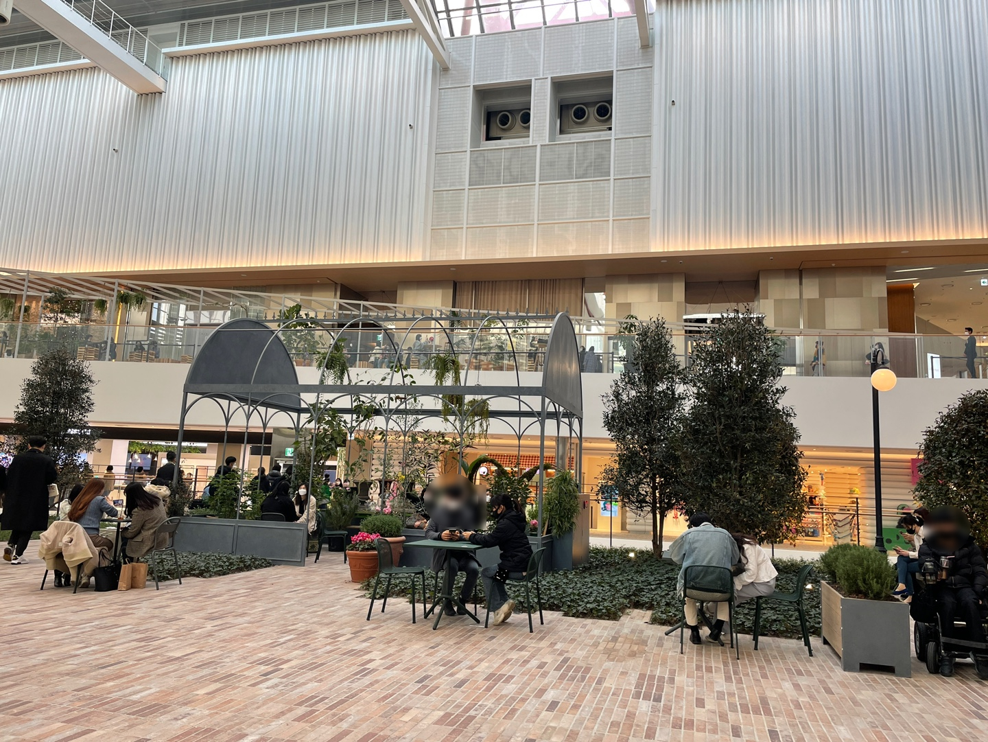 가까이서 지켜본 정원은 야외 공원이나 뉴욕의 센트럴파크를 생각나게 할 정도로 가로등, 테이블, 조경이 제대로 재현되어 있었다. 식물들이 생화라는 점에서 시간이 지나며 어떻게 이 공간이 변화할지 궁금해졌다.