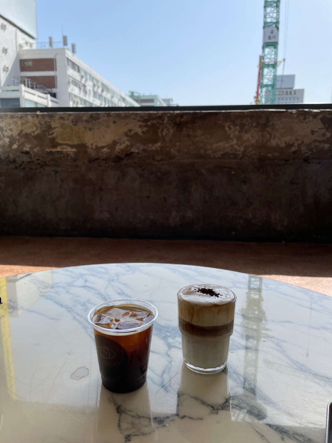시그니처인 앵글 340 크림라떼를 마셨다. 다층으로 구성된 커피여서 첫 한 모금에 피넛크림의 부드러움을 먼저 느끼고 라떼로 마무리 할 수 있다. 친절하게도 피넛크림의 묵직함을 리프레쉬하며 먹을 수 있게 입가심으로 아메리카노 1잔을 제공해 주신다.