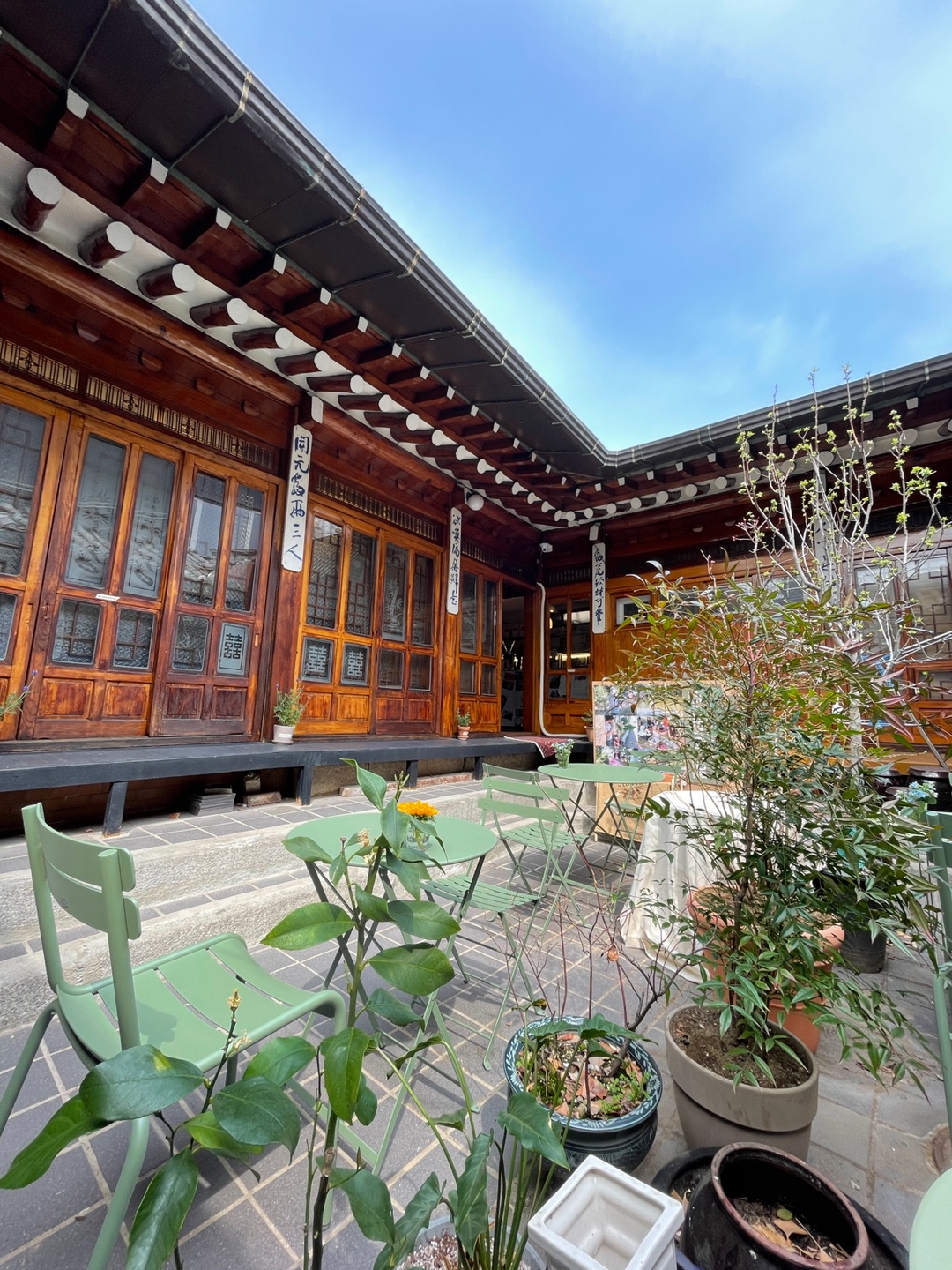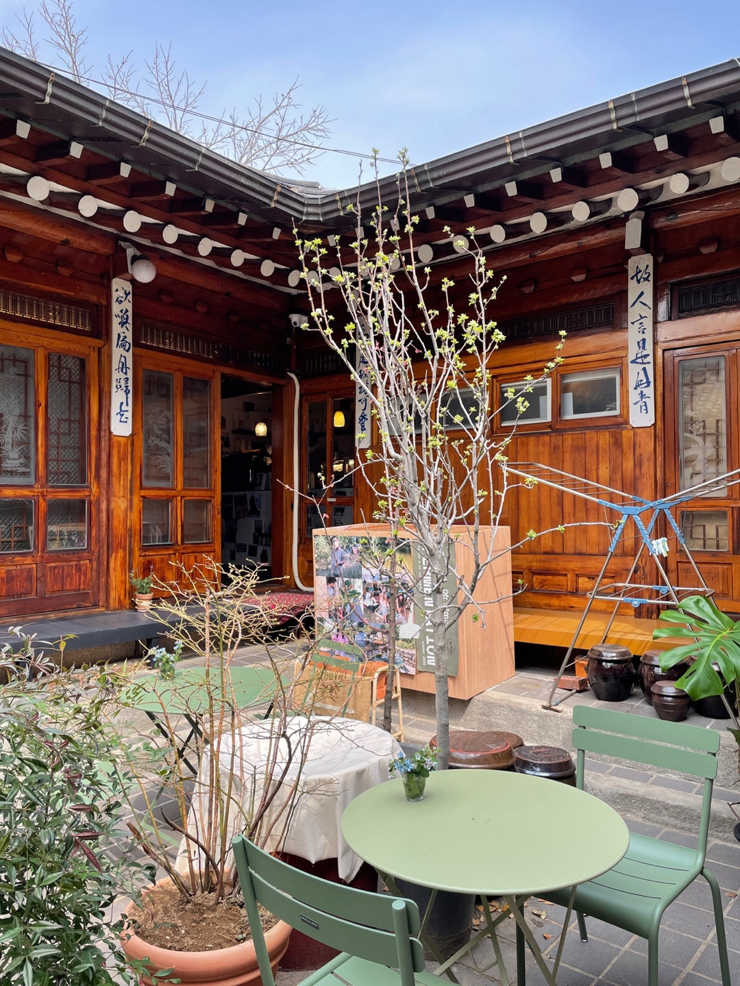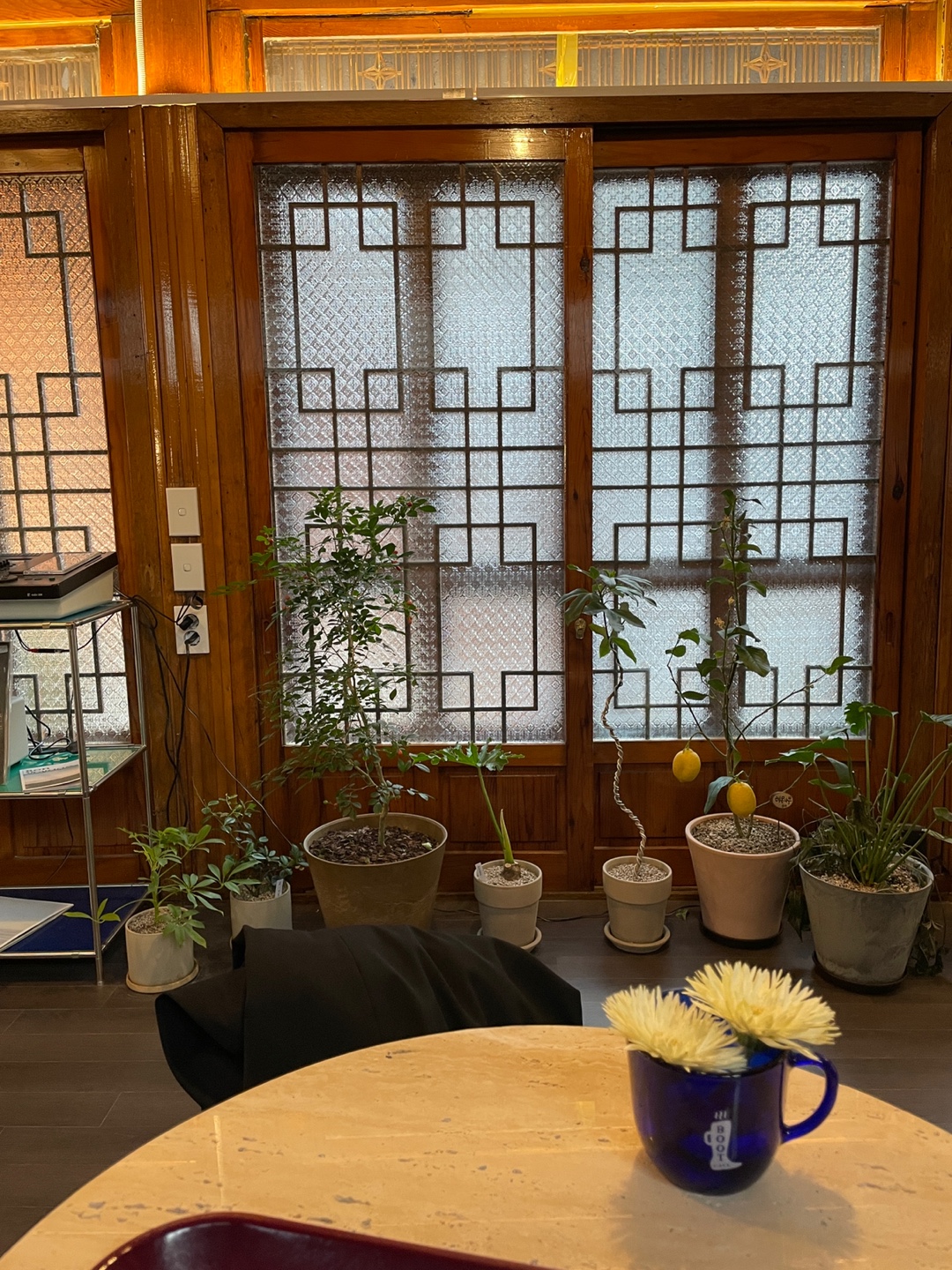오픈 전 SNS에서 봤던 파리매장의 모습이 군데군데 남아 있었다(흰색 타일과 잡지를 키치하게 붙여둔 벽면, 각진 컬러풀 스툴) 하지만 파리와 차이점은 단연 한옥이었다(하지만 그 나라의 옛 건물에 카페를 세운 점은 공통점이다), 한옥으로 로컬라이징된 공간에 올드재즈가 흘러나오고 커피 향과 함께 현지 분위기가 묻어나니 힙함이 절정을 달린다. 프렌차이즈가 아닌 개인카페에서 느낄 수 있는 카페 사장님의 취향이 느껴지는 대목이었다.