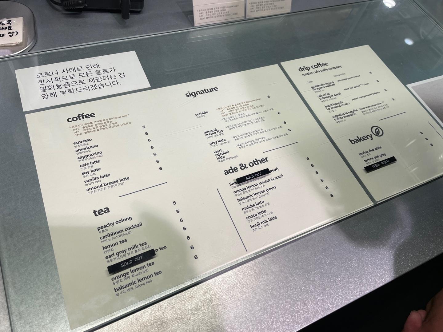 커피는 UFO 커피 컴퍼니의 원두를 사용한 드립 커피가 있고 2가지 원두 중 선택할 수 있는 일반 커피가 있다. 하지만 새로운 로스터리를 주기적으로 소개하는 시스템이라고 한다. 다음에는 꼭 커피 메뉴를 마셔보고 싶다.