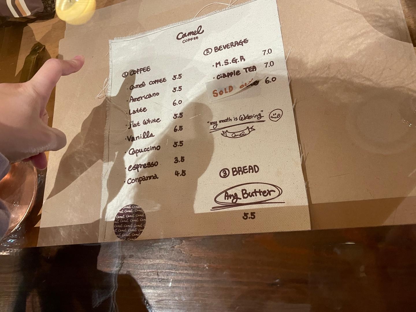 낙타의 브라운 컬러감이 텍스트와 조화를 이룬 분위기랄까, 우디한 주문대와 직각으로 떨어지는 가구, 양탄자 같은 카펫이 카멜이라는 단어와 만나 아라빅한 분위기를 낸다. 매장은 작지만 오밀조밀하게 꾸며진 매장이 매력적이다.