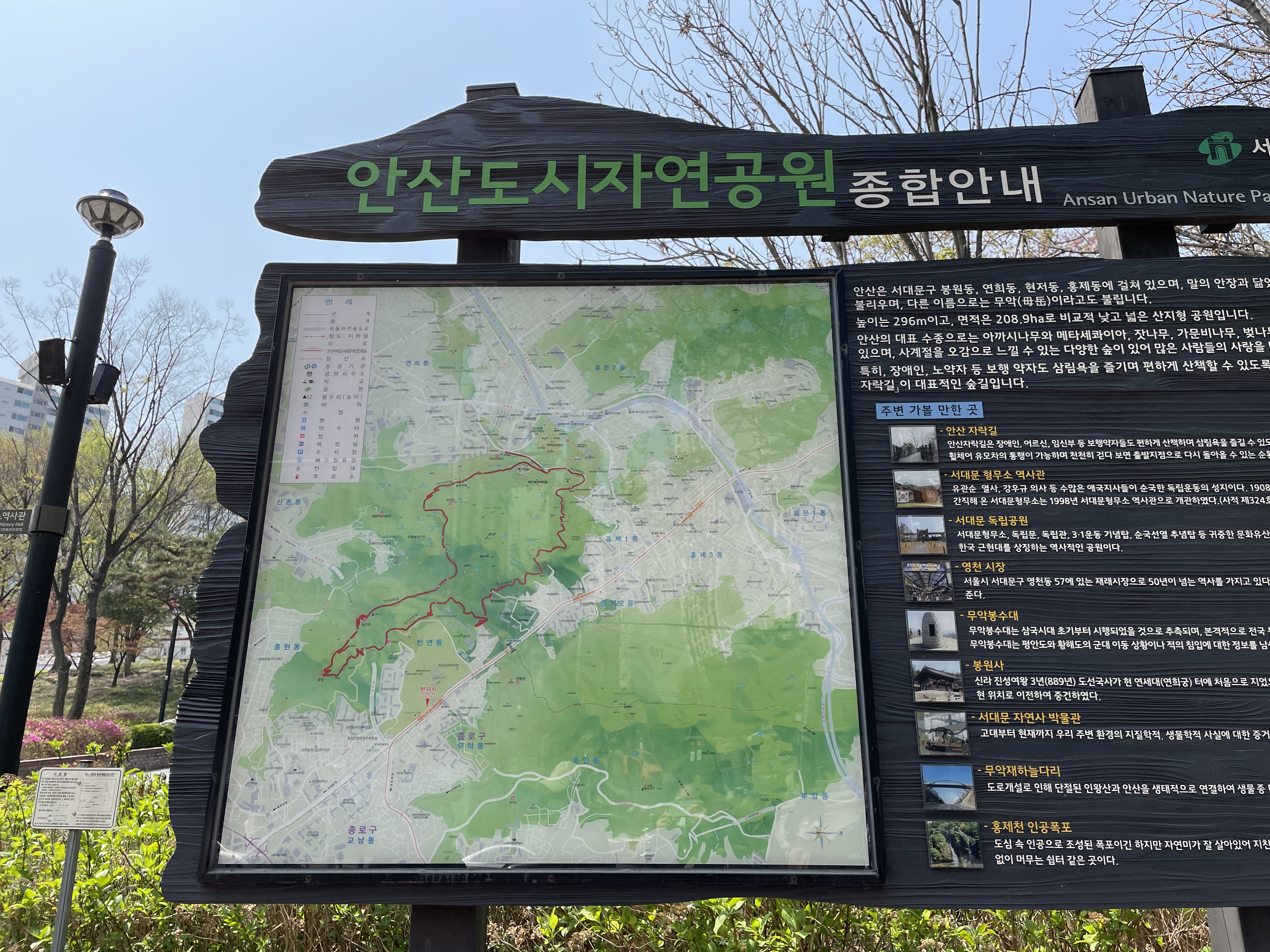 2)추천코스: 독립문역 - 안산자락길 - 안산봉수대(정상) - 메타세콰이어길 - 연희동